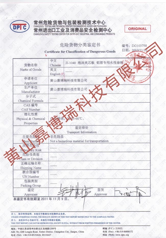 危險貨物分類鑒定書_JJ-1040